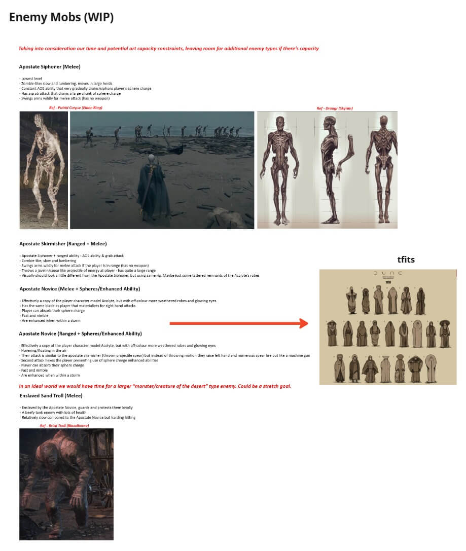The Siphoner had been designed to resemble a withered body lying in the desert, with strange, glowing lines running across its form. This visual cue subtly communicated that the enemy uses magic, making it instantly recognizable in combat.