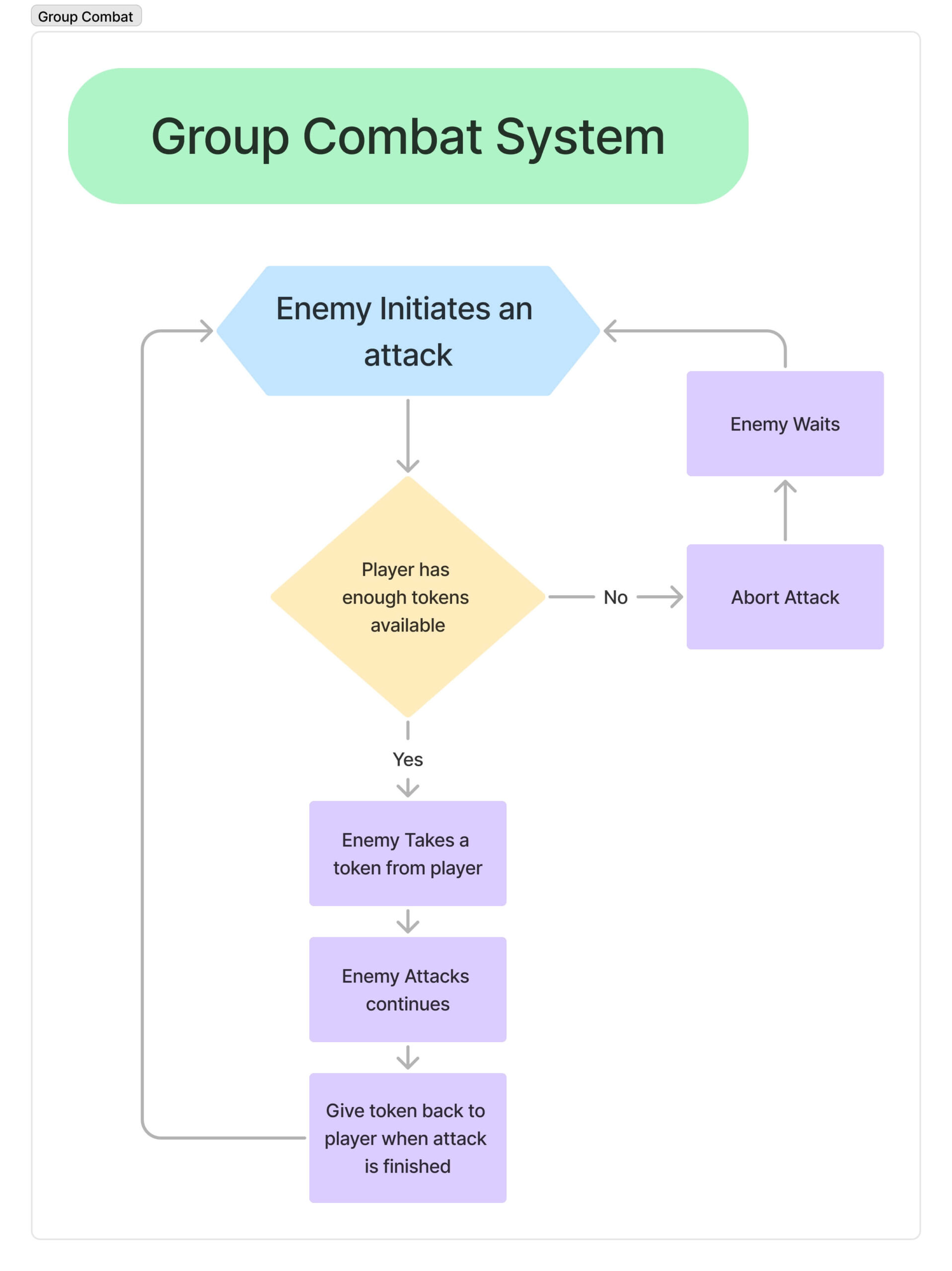After a thorough investigation, I decided to implement a Token System. This system worked by assigning the player a set number of attack tokens, which determined how many enemies could engage simultaneously. Before attacking, an enemy would first check if any tokens were available. If there were, it could proceed with the attack; if not, it would have to wait for its turn until a token became available again.