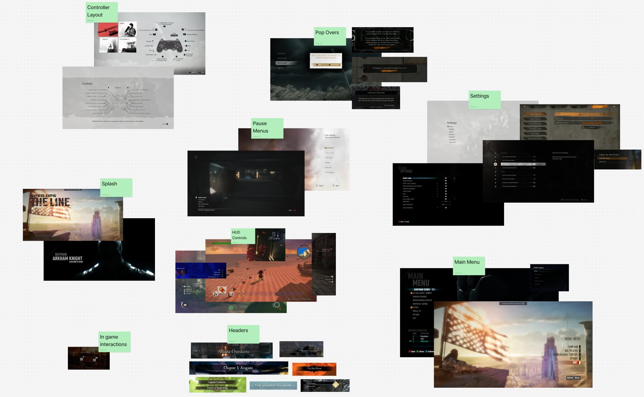 For the UI’s aesthetic, we took inspiration from titles like God of War, Uncharted, Shadow of the Colossus, and Spec Ops: The Line. Our goal was to use clean yet impactful typography and visuals, creating a modern, immersive experience while maintaining simplicity for ease of use.